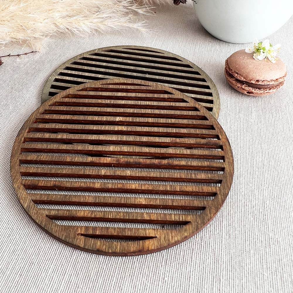 Art Deco stiliaus medinis padėkliukas II, apvalus, išskirtinio dizaino padėkliukas su Art Deco stilistika. Rinkitės iš dviejų skirtingų spalvų: rudos arba pilkos. Unikaliai atrodantis medinis padėkliukas pagamintas iš aukštos kokybės, 3 mm storio, beržinės faneros. Šis padėkliukas virs puikiu akcentų Jūsų kasdieniams ritualams su šiltu kavos ar arbatos puodeliu, o taip pat apsaugos ir stalo paviršių.